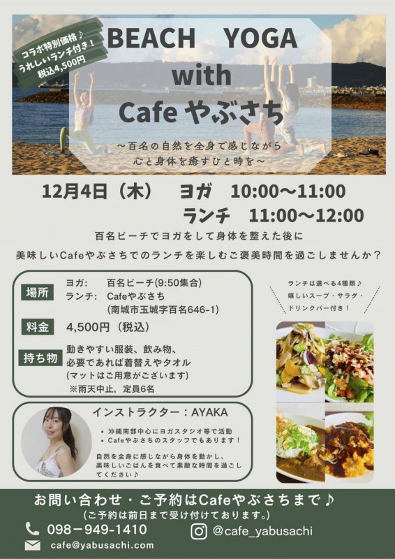 Cafeやぶさちのランチ×ビーチヨガのコラボイベントの開催が決定しました!!